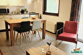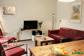 Gemütliches Wohnzimmer mit Fernseher, angrenzend an die offene Küche.