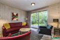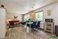 Gemütliches Wohnzimmer mit Fernseher, angrenzend an die offene Küche.