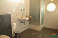 Das Badezimmer im Erdgeschoss ist mit einer Badewanne, Dusche, Waschbecken und separatem WC ausgestattet. Im Obergeschoss gibt es ein weiteres Badezimmer mit Dusche, Waschbecken und Toilette.