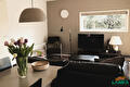 Cozy, modern living room, adjacent to the open kitchen.